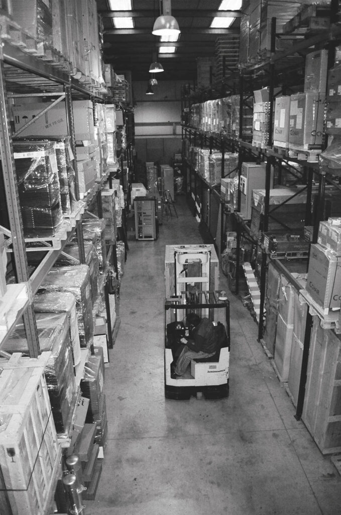 Disponemos de zonas de picking donde preparar pedidos y donde los ingenieros pueden realizar acciones de mantenimiento sobre las máquinas almacenadas que deban permanecer largos periodos en depósito.